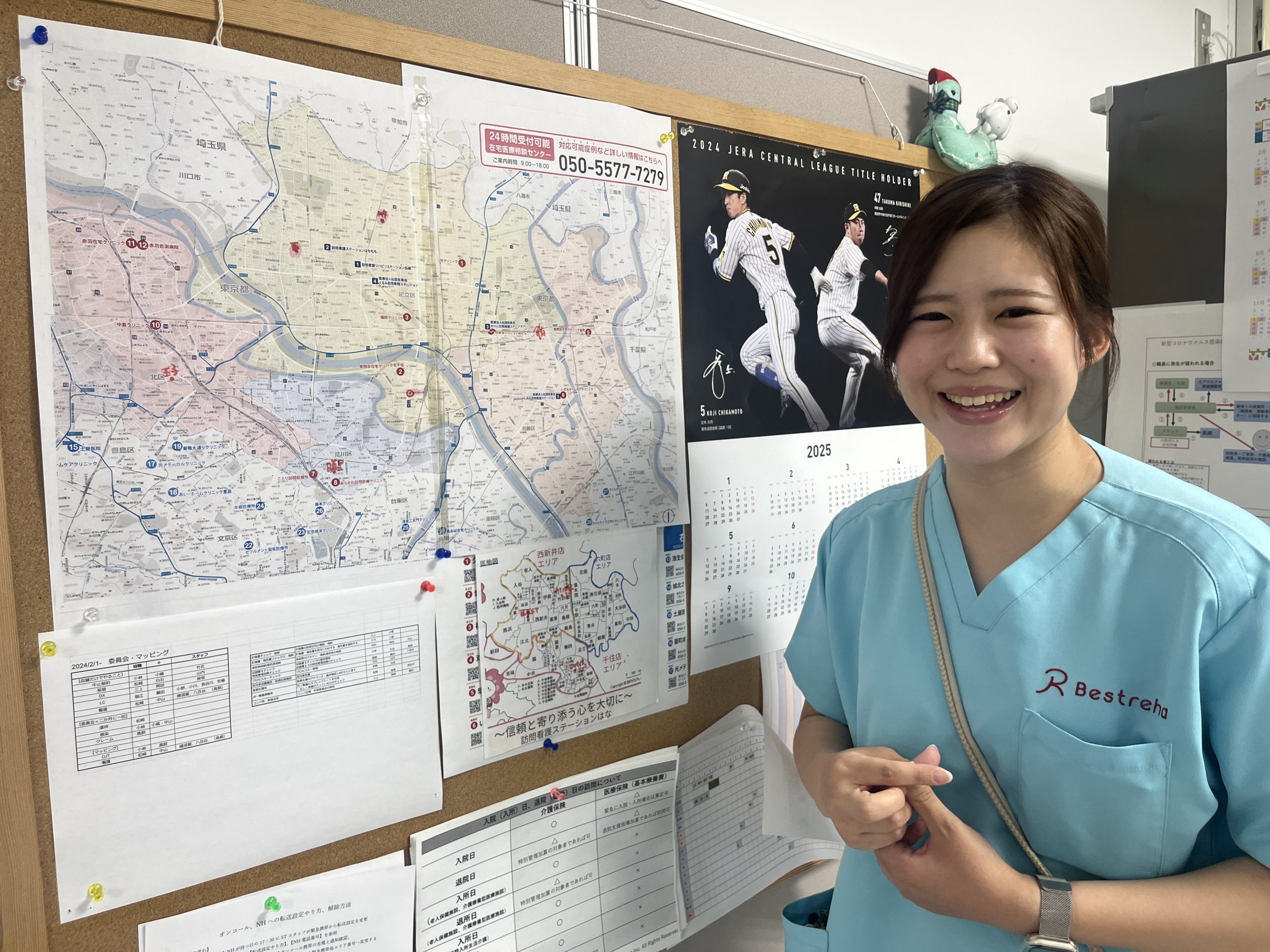 在宅医療やターミナルケアまで幅広く関われる点に大きな魅力を感じています。ご利用者様が安心して暮らし、最期までその方らしく過ごせるようサポートできることにやりがいがあります。また、所長をはじめ子育て中のスタッフが多く、現在も育休中のスタッフが4人在籍している環境であるため、急な体調不良にも「お互い様」と理解し合える風土があります。そのため家庭と仕事を両立できる環境が整っているのも心強いです。